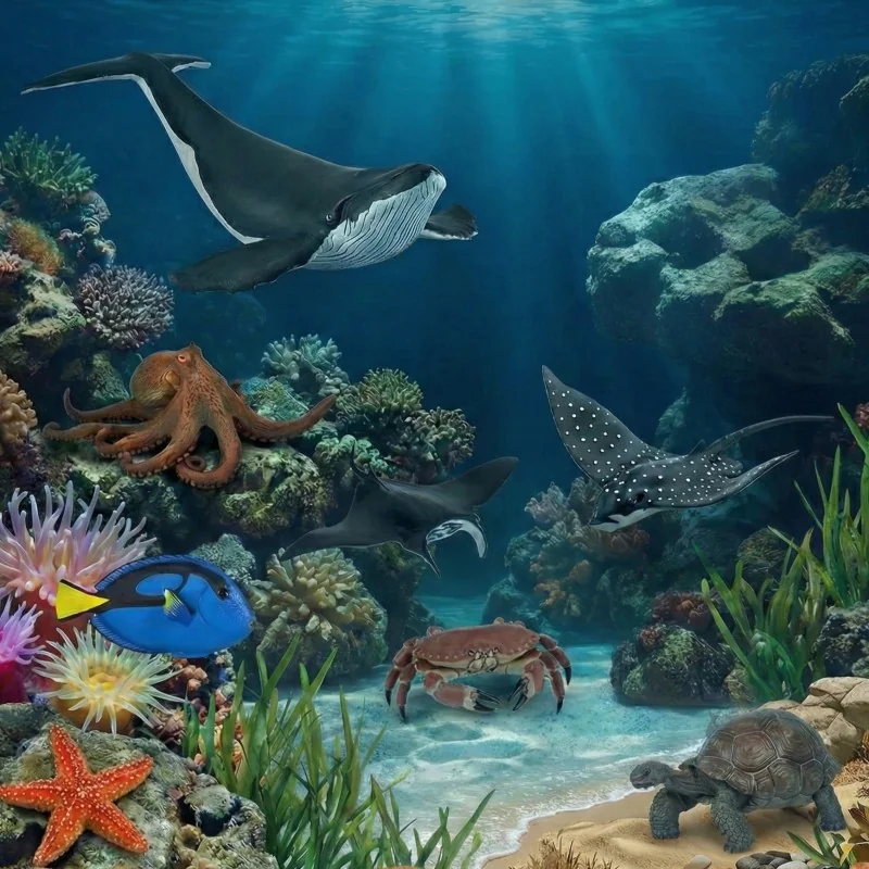 Transformez le moment du jeu en une véritable expédition océanographique avec ce Méga-Pack "Océan & Récif". Composé de figurines Papo reconnues pour leur réalisme aquatique, ce coffret offre un panorama complet de la vie marine, des prédateurs majestueux aux habitants colorés des coraux.
