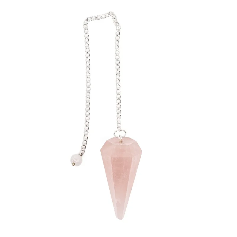 Pendule hexagonal en quartz rose du Brésil – Radiesthésie & douceur du cœur