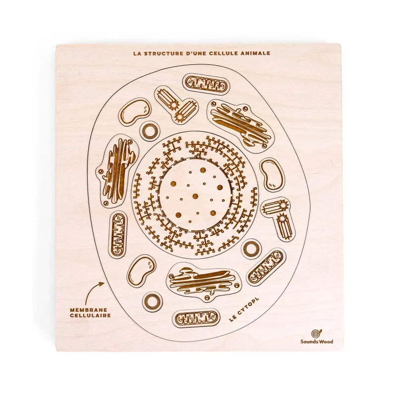 Ce puzzle en bois permet d'explorer l'organisation complexe de la cellule animale et de ses composants microscopiques. Il invite à découvrir les différents organites, du noyau aux mitochondries, pour comprendre le fonctionnement de base du vivant. C'est un support pédagogique idéal pour les premières leçons de biologie et le développement de la motricité fine.